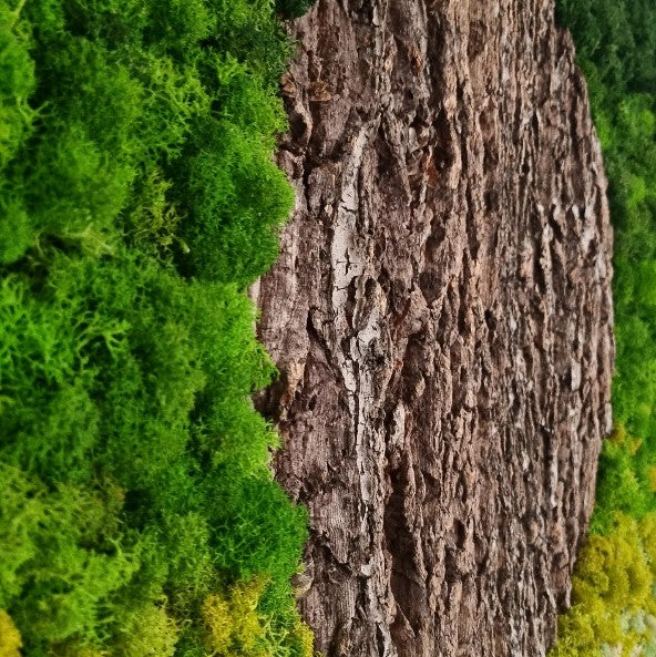 This one-of-a-kind piece of moss wall art is all about textures and contrasts. The overall effect of this piece is one of balance and harmony. The circle at the center provides a sense of grounding and stability, while the color's degradation represents the ever-changing nature of life. This unique piece of biophilic art is a reminder that life is a cycle of growth, decay, and renewal.